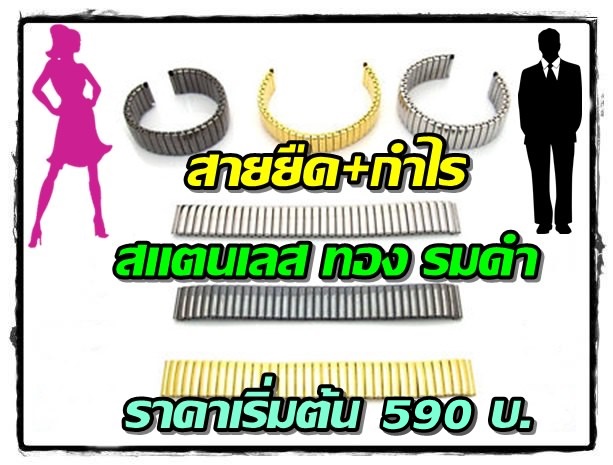 สายแบบกำไร+ยืดได้ สแตนเลส, ทอง, รมดำ